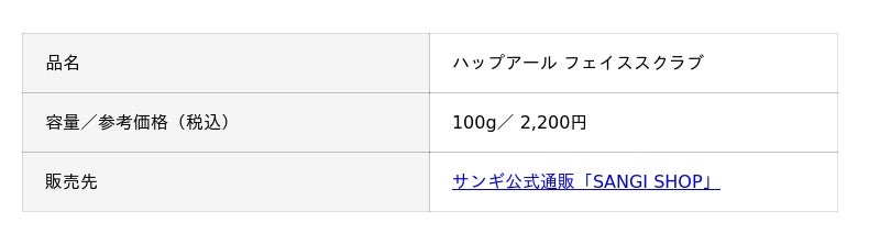 ● @cosme 「ハップアール フェイススクラブ」商品ページ