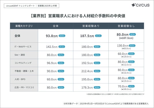 circus株式会社(所在地:東京都中央区、代表取締役:⽮部 貴志)は、人材紹介プラットフォーム「circusAGENT」に掲載された求人データ(2025年4月~9月)をもとに実施した営業職のエージェント採用トレンド調査を行いました。