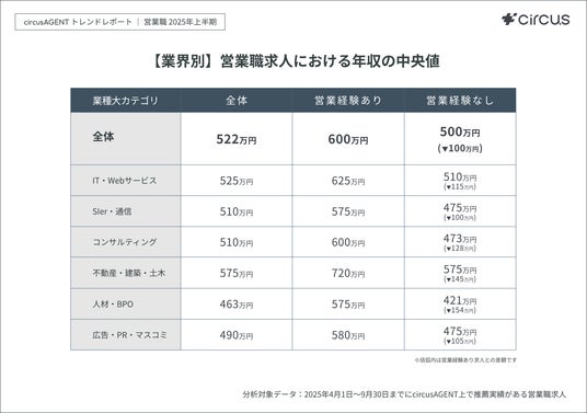 分析対象 circusAGENT上で2025年4月1日~9月30日の期間内に推薦実績がある営業職求人