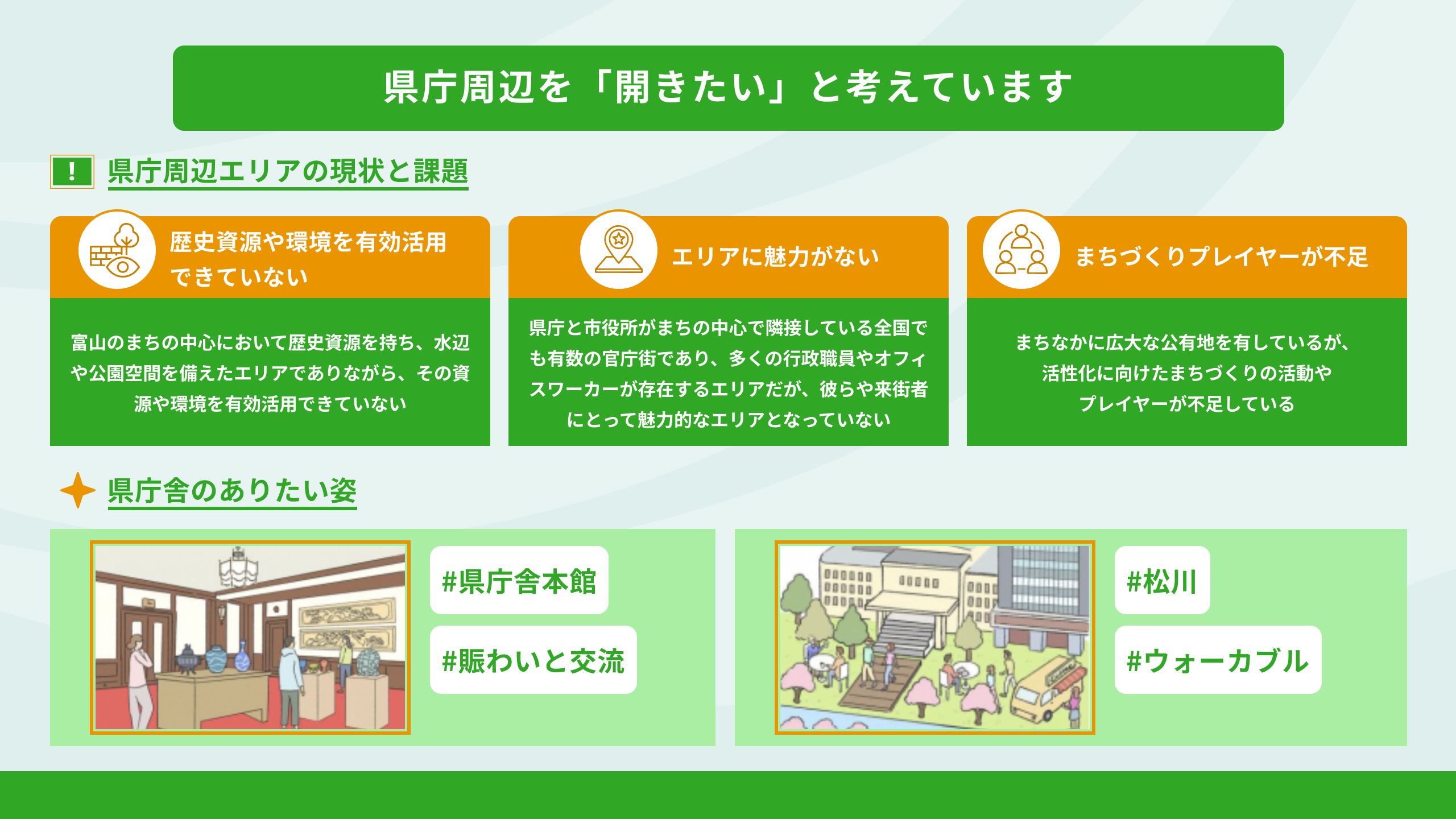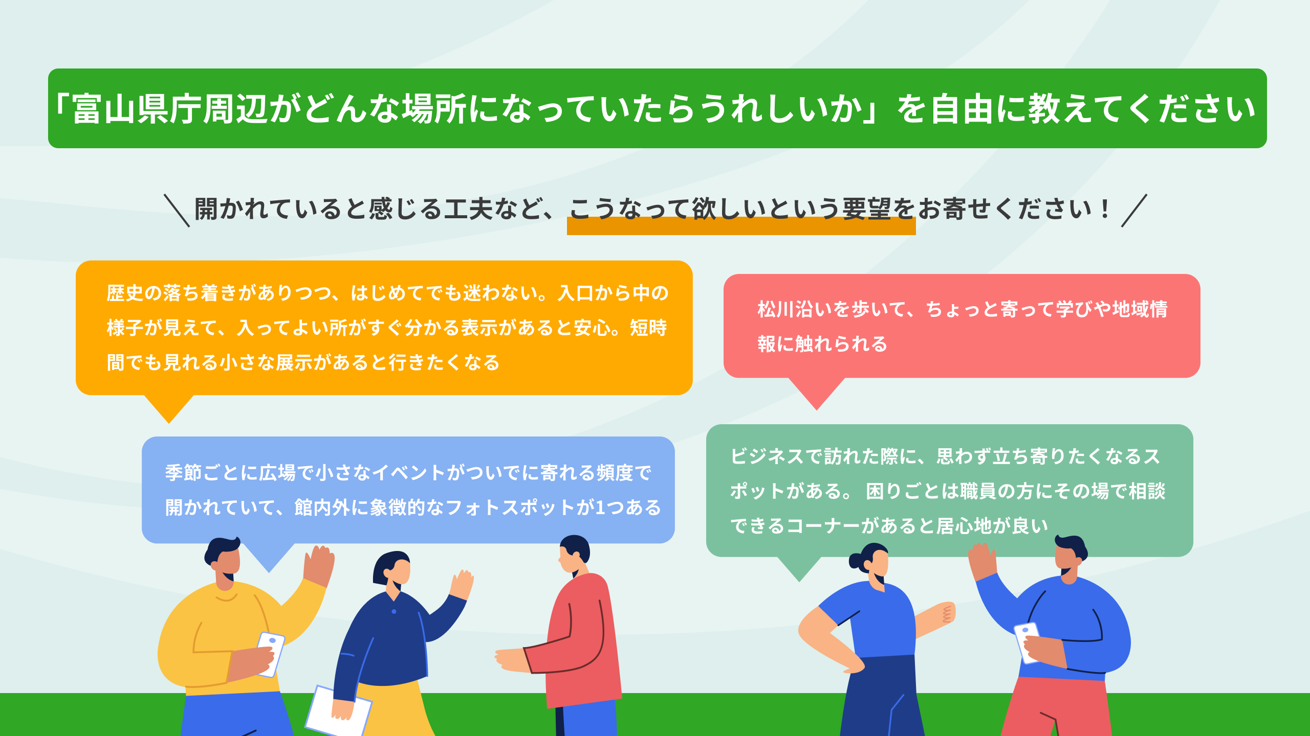 テーマ:富山県庁周辺がどんな場所になっていたらうれしいですか?募集期間:2025年11月14日(金)から 2025年12月14日(日)23:59まで