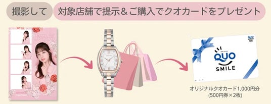 「橋本環奈×Angel Heart」コラボレーションフレームで撮影したシートを対象店舗へお持ちいただ き、腕時計をご購入いただくと、**オリジナルQUOカード(1,000円分)**をプレゼントいたします。