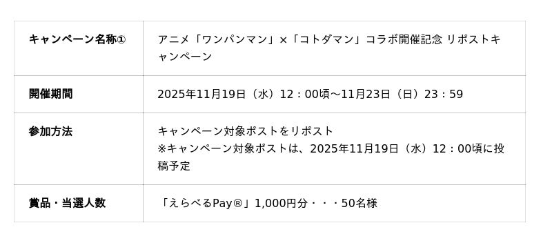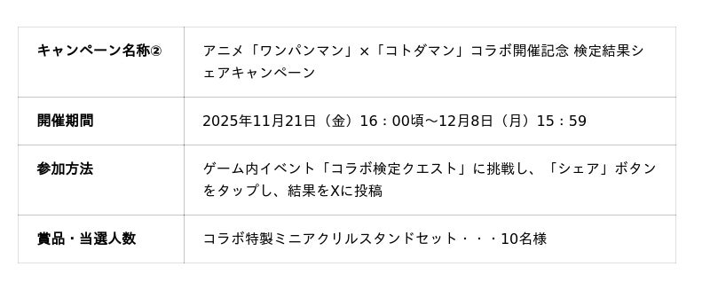 ■アニメ「ワンパンマン」×「コトダマン」コラボ各種キャンペーンを開催!