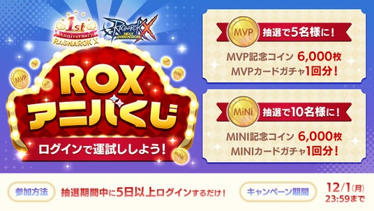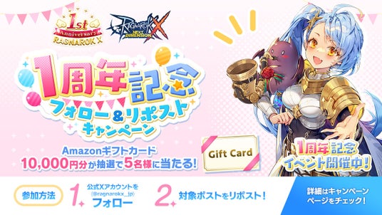 その他、Amazonギフトカード 10,000円分が抽選で5名様に当たるXでのリポストキャンペーンや、ゲーム内コインが抽選で当たる「ROXアニバくじ」も実施します。