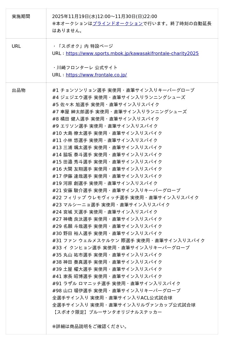 【川崎フロンターレ ブルーサンタ in ベトナム チャリティーオークション 概要】