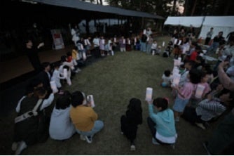 伐採した樹木を使って、世界にひとつだけのスプーンを作る「木のスプーンづくり体験」、リサイクル素材でソーラーランタンを作る「ソーラーランタンづくり体験」を開催。日没後はソーラーランタンの点灯式を実施しました。参加者が作ったソーラーランタンを芝に並べ、一斉に点灯しました。