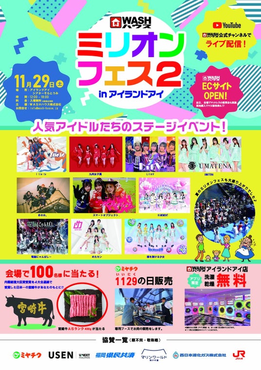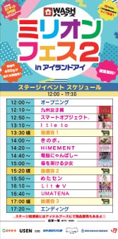 前回好評のライブイベント第2弾『ミリオンフェス2 inアイランドアイ』を開催いたします。WASHハウス公式Yotubeチャンネルにもライブイベントを生配信!