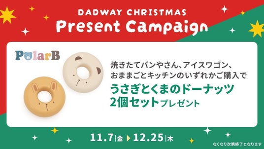 ■ノベルティ12/25(木)までにPolarBの「焼きたてパンやさん」「アイスワゴン」「おままごとキッチン」のいずれかご購入で「うさぎとくまのドーナッツ2個セット」をプレゼント!