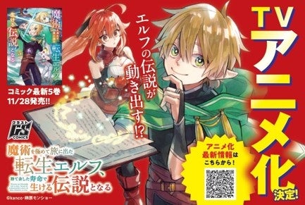 スターツ出版株式会社(本社:東京都中央区、代表取締役社長:菊地修一)は、『魔術を極めて旅に出た転生エルフ、持て余した寿命で生ける伝説となる』の紙コミック5巻を2025年11月28日(金)に発売開始いたします。本作は「グラストCOMICS」の大ヒットシリーズであり、このたび、待望のTVアニメ化が決定いたしました。またアニメ化&「グラストCOMICS」4周年を記念して、全国書店にて、限定特典つきの「グラストCOMICS4周年フェア」を開催いたします。