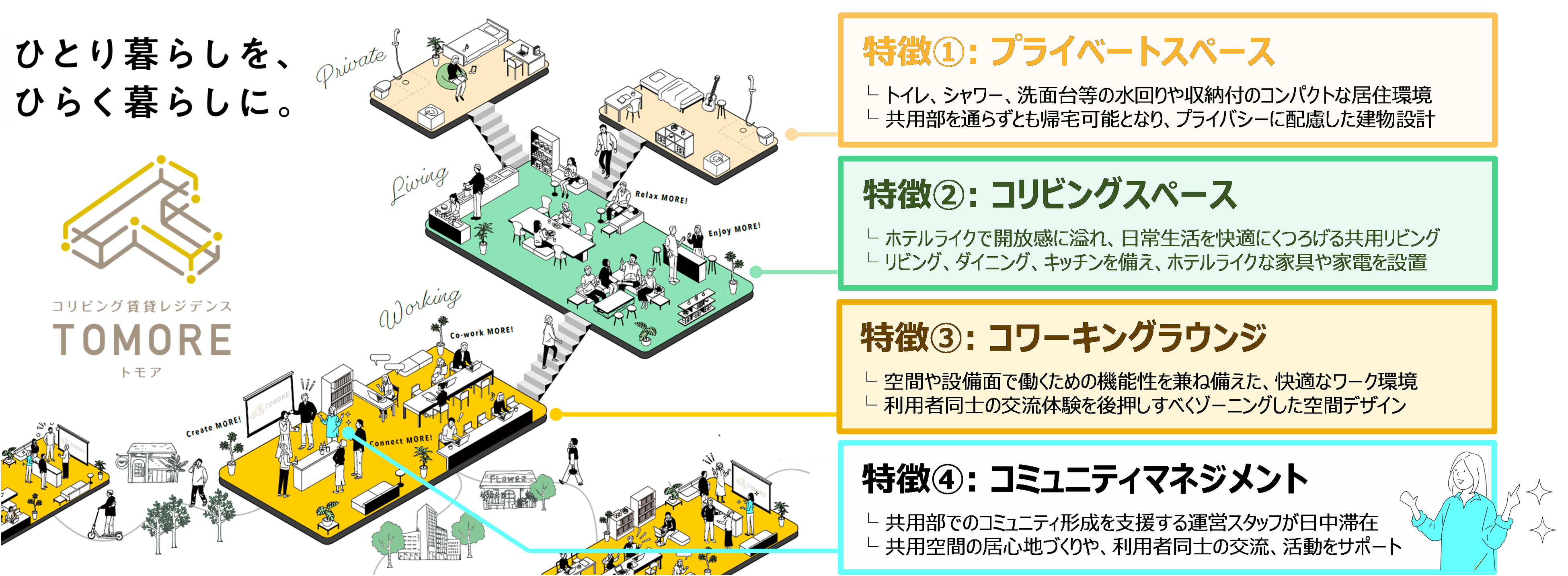 今後も、「TOMORE」は都心部で暮らす20~30 代の社会人単身者に向け、新たな「一人暮らしの選択肢」を提供してまいります。