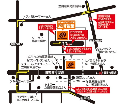 店舗は、JR国立駅の北約2.4km、県道7号線沿いに位置します。居抜き物件を活用して開設された当店では、タイヤ、オイル、バッテリーなどのカー用品に加え、点検・整備などのサービスを展開いたします。自動車整備に関する知識と技術、提案力を備え、安心してクルマのメンテナンスをお任せいただける店舗として、地域のお客様を全力でサポートいたします。
