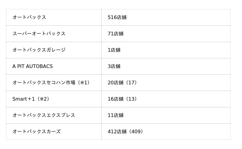 ご参考:オートバックスグループ国内店舗数 計1,050店舗