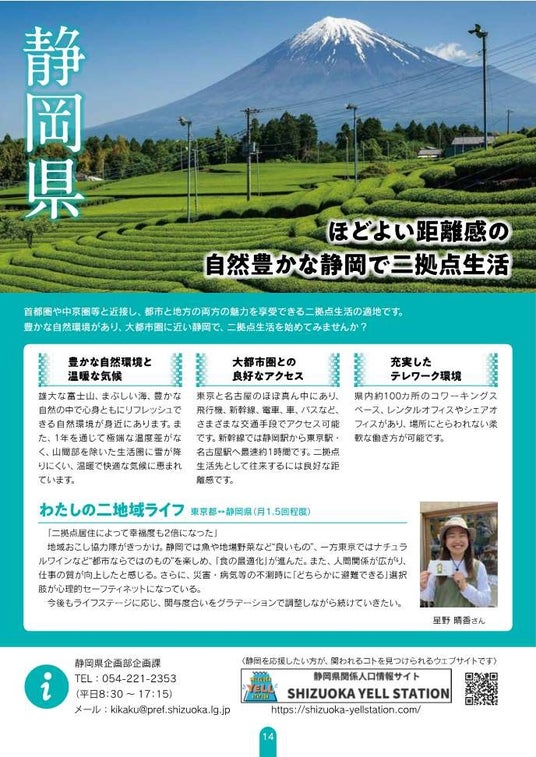 共同出展ブースにて、リーフレット『二地域居住のすすめ』を活用し、静岡県の「二拠点生活」の魅力を発信します。