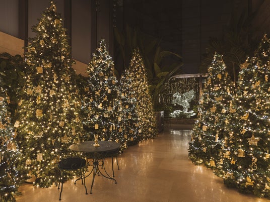 中央の階段の周りには、大きなクリスマスツリーに、「バー」ジャケットから「ジュノン」ドレスに至るまで、メゾンのタイムレスなアイコンのミニチュアがあしらわれています。各空間に施されたポエティックな演出が、2026年クルーズ コレクションのクリエイションを一層引き立てます。「ル ジャルダン」は、ペガサスとスノードームで構成された魅惑的な装飾に照らされます。この魅惑的なひとときは、豪華なクリスマスツリーによって華やかに彩られたウィンターガーデンへと続いていきます。