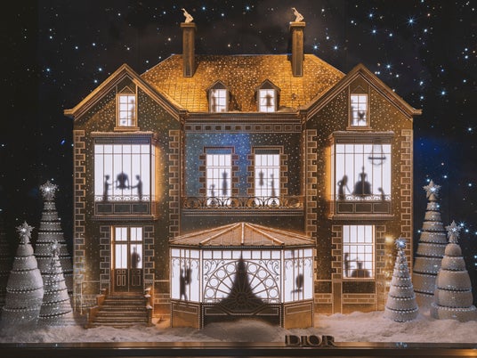 ホリデーシーズンを祝福し、ディオールの歴史ある場所は、その輝かしい軌跡をたどるアニメーションで彩られています。