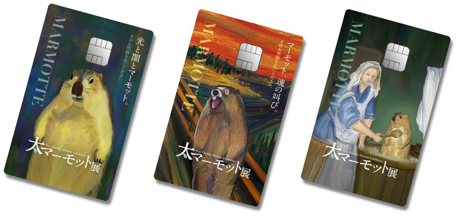 代表作「たたずむマーモット」をはじめ、「マーモットを洗う女」や「マーモットの叫び」といった有名絵画をオマージュした思わず誰かに見せたくなる人気のイラスト3種をクレジットカードにしました。