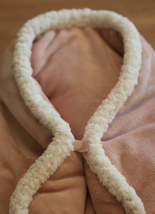 ひざ掛けとして使用するほか、本体の長辺に付いたボタンを留めることで、肩から羽織ることができます。デスクワーク中や家事の合間などでも動きを妨げにくく、快適に使用できます。また、広げてお昼寝時におなかをあたためるブランケットとしても活躍します。シーンに合わせて使い分けられる、便利な3WAYブランケットです。