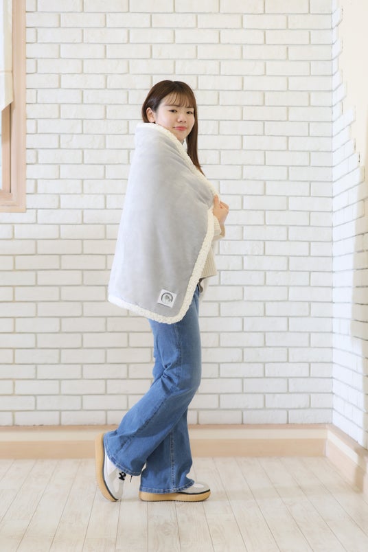 本製品は、発熱、遮熱、蓄熱する素材を重ねた8層構造の、汗ばむほどの温もりを体感できる“激アツ”な3WAYブランケットです。