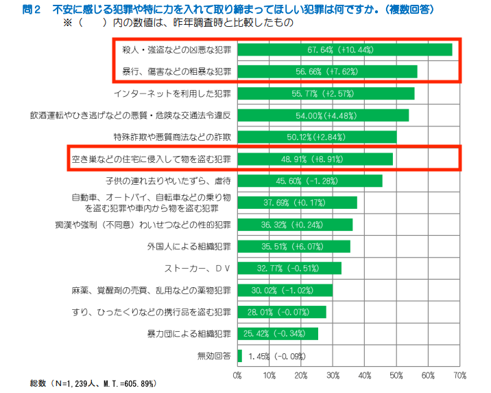 北海道警察本部が2024年12月に公表した『警察活動等に関する道民の意識調査結果』によると、「不安に感じる犯罪や特に力を入れて取り締まってほしい犯罪」として「殺人・強盗などの凶悪な犯罪」「空き巣などの住宅に侵入して物を盗む犯罪」がいずれも前年比約1割増となっており、道民が安全への不安を抱えている実情がうかがえます。