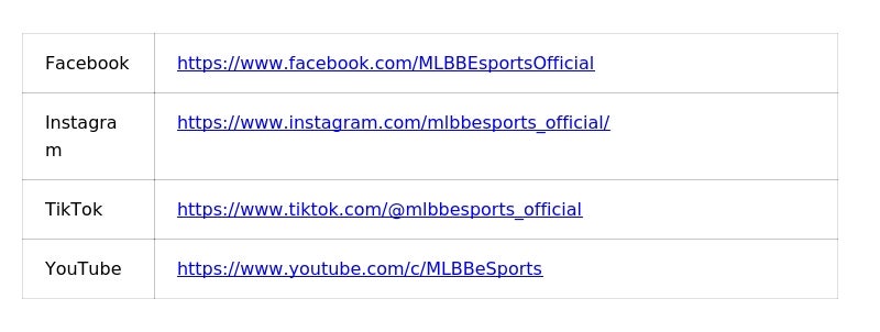 モバレEスポーツに関する詳細は、以下の公式ソーシャルメディアチャンネルをご覧ください: