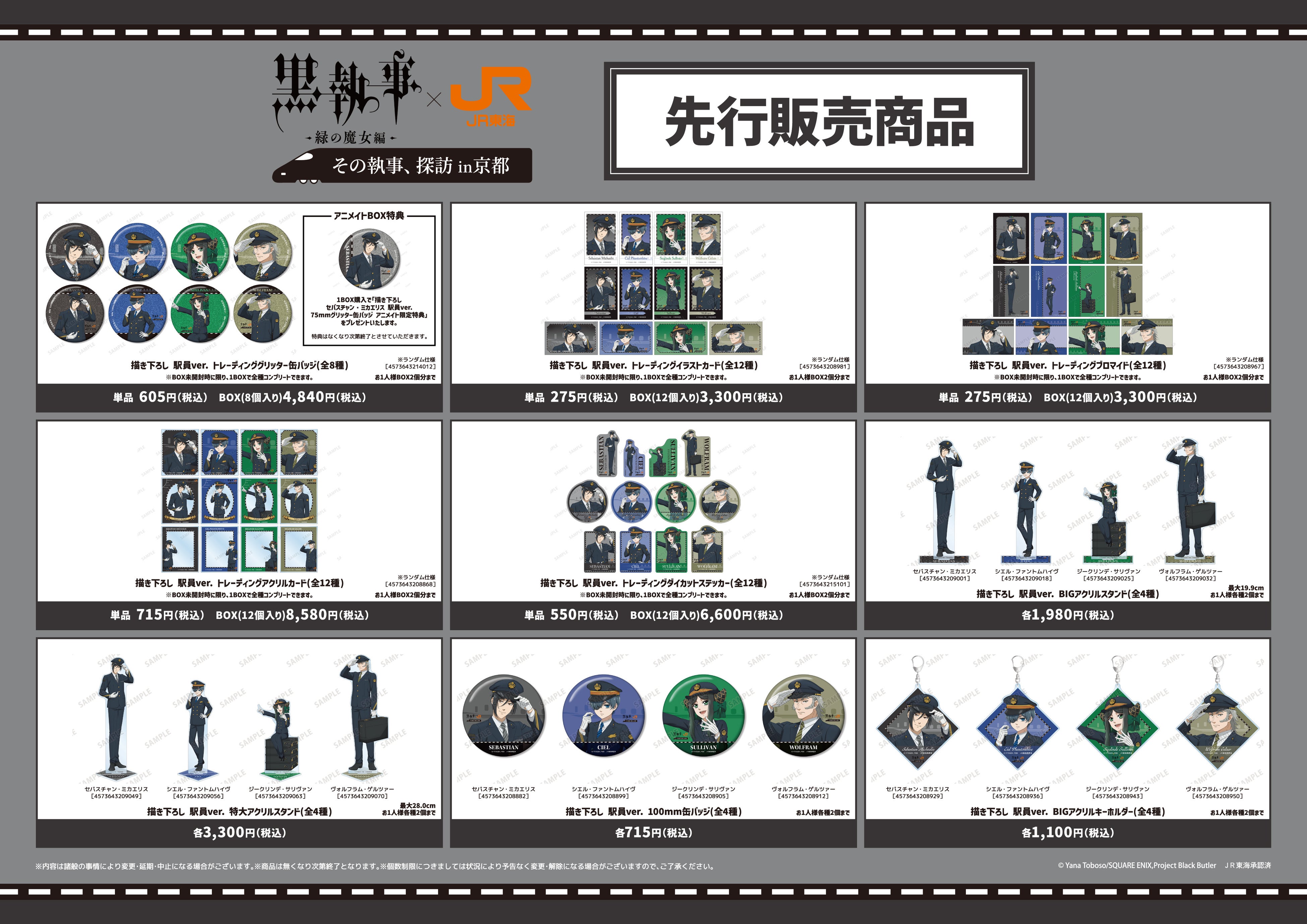 「黒執事 -緑の魔女編- × JR東海 その執事、探訪 in 京都」オリジナルグッズ先行販売