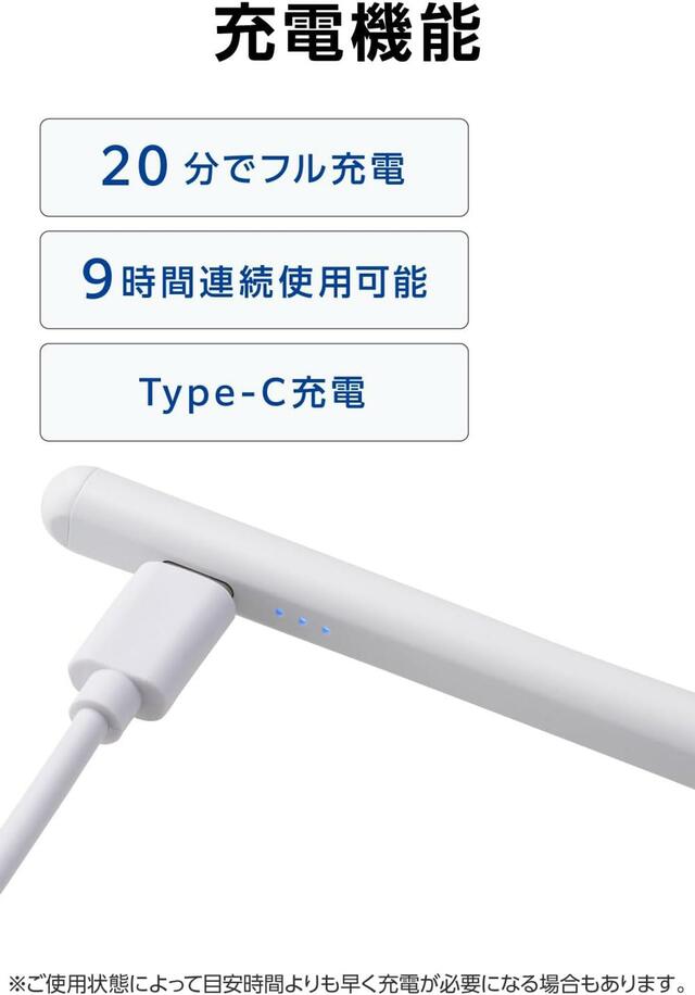 本製品は、忙しい毎日の中でも“すぐ使える”ことにこだわったタッチペンです。最大の特長は、なんといっても 約20分でフル充電できる急速チャージ。1度フル充電すれば最長9時間使えるため、「ペンを使いたいときにバッテリーが空」というストレスから解放されます。