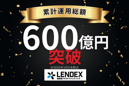 この度、融資型クラウドファンディング「レンデックス(LENDEX)」を運営する株式会社LENDEX(本社:東京都渋谷区、代表取締役:中村 智)は、累計運用総額600億円を突破したことをご報告いたします。