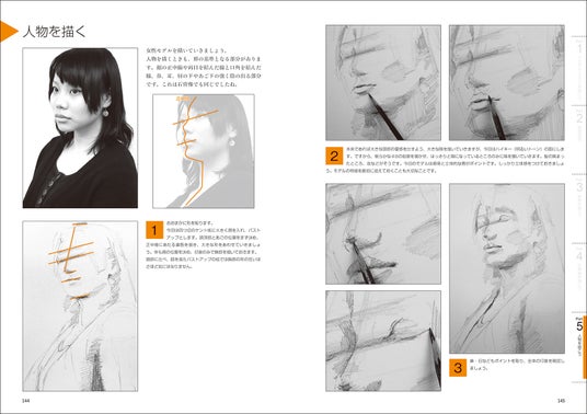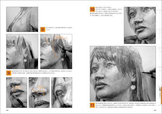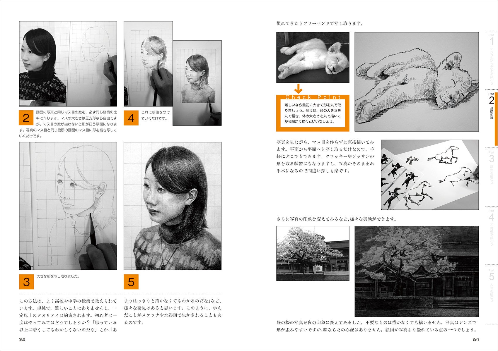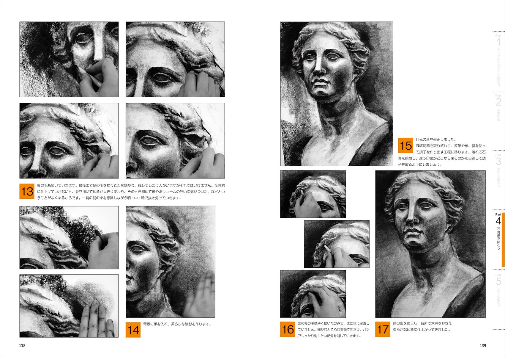 それらをデッサンが出来上がるまでの途中段階を細かく分けて、それらを丁寧に解説する。