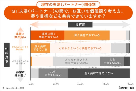 認知科学に基づくコーチングを法人・個人に提供する株式会社ミズカラ(本社:東京都千代田区、代表取締役 山宮健太朗)は、2025年10月21日(火)に25歳~59歳の既婚有職男女500名を対象とした「"いい夫婦"の関係性」に関する意識・実態調査を行いました。