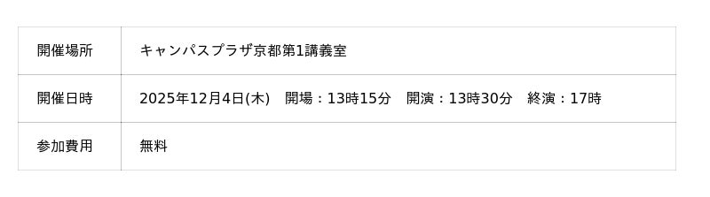 12月4日(木)にキャンパスプラザ京都第1講義室で開催します