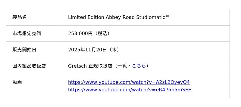 フェンダー ミュージカル インストゥルメンツ コーポレーション(所在地:米国カリフォルニア州、CEO:アンディ・ムーニー、以下FMIC)は、Gretsch(R)とAbbey Road Studios が共同開発したモデル『Limited Edition Abbey Road Studiomatic(TM)』を発表しました。本モデルは、Abbey Road StudiosとGretschそれぞれが培ってきたサウンド美学を融合し、優れたトーンの柔軟性、明瞭さ、そしてミックスへの馴染みやすさを兼ね備えた、“録音のためのギター”として開発された一本です。