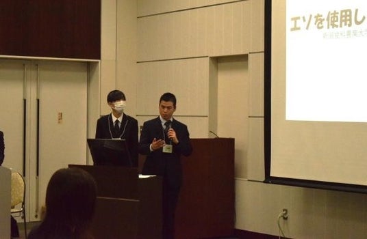 部門Aで審査員特別賞を受賞した中山ゼミ・越後ボーイズ【食料産業学科3年:近藤さん/小嶋さん/笠原さん】は、「エソを使用した『新潟バーク』の開発」をテーマに発表に臨みました。