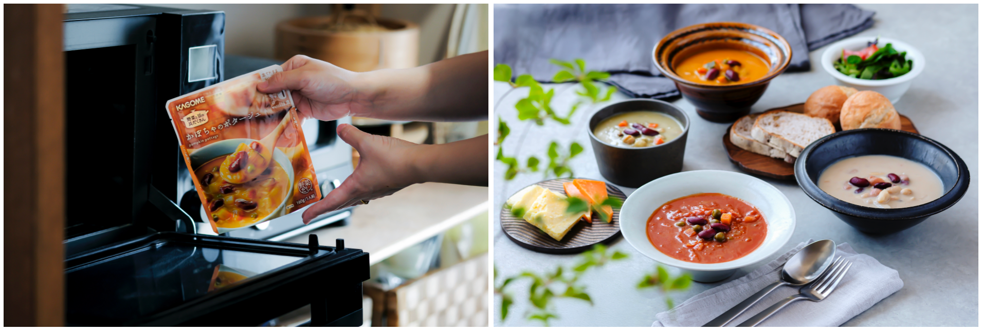 カゴメ株式会社が運営する通販「カゴメ健康直送便」より、イベント来場者特典として野菜と豆の具だくさんポタージュ 4種のうちいずれかをプレゼントします。