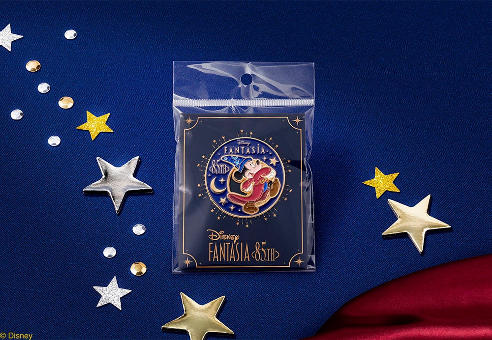 85周年ロゴ入りのピンバッジ。ジャガードバッグやエコバッグに着ければ、ディズニー映画『ファンタジア』の世界をよりいっそう盛り上げてくれます。もちろん、普段使っているお気に入りのバッグやポーチに着けても。