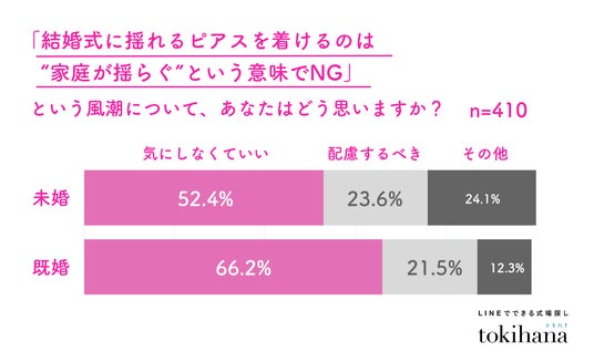 未婚者の52.4%、既婚者の66.2%が“気にしなくてもいい”と答え、アクセサリーは自由でいいという考えが読み取れました。
