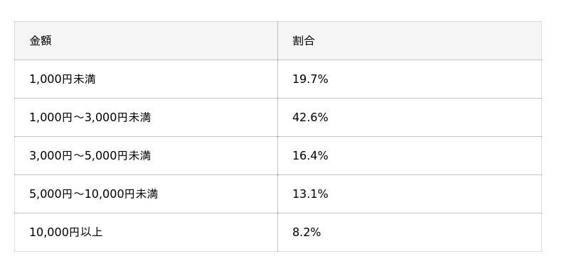 ・受け取ったキャッシュバック額は「1,000円~3,000円未満」(42.6%)が最多で、続いて「1,000円未満」(19.7%)、「3,000~5,000円未満」(16.4%)が続いた。