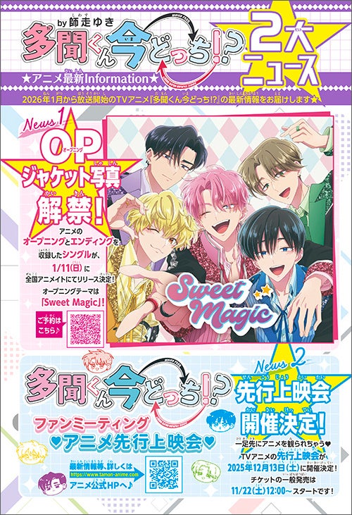 2026年1月から放送開始のTVアニメ「多聞くん今どっち!?」の最新情報をお届けします!