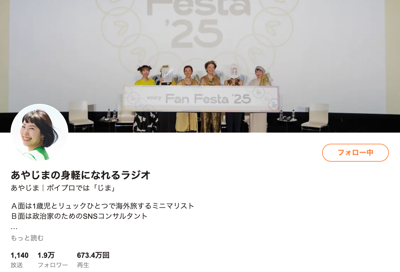 あやじまの身軽になれるラジオ:https://voicy.jp/channel/1236