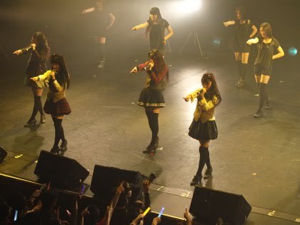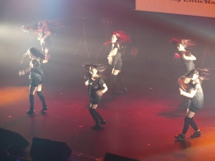 さて、お次に紹介するのが、仙台出身のグループ、Dorothy Little Happyのワンマンライブです。公式サイトを見てもわかるように、なんともメジャー感のある佇まいで、すでにavexから1枚のシングルと2枚のミニアルバムを発表しています。この日のワンマン会場も、渋谷O-EASTという1000人以上収容できる大きなライブハウスでした。2011年のTokyo Idol Festival以来加速度的にファンを増やしているドロシー、O-EASTももちろんお客さんでいっぱいに!鈴木は2階の取材フロアから拝見していましたが、1階フロアのギュウギュウっぷりがアツすぎる!そしてステージ上も、本当にキレのあるダンスで魅せてくれていまして、写真で伝えきれるかどうか…。ドロシーは、ステージのスピード感がいいですね!