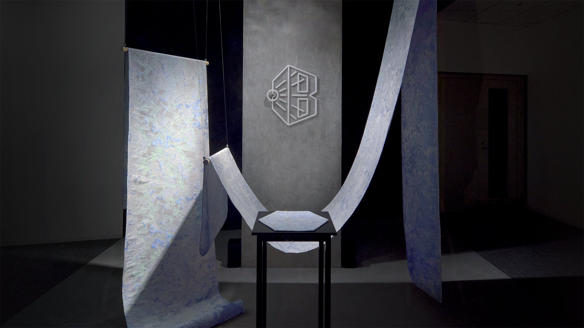 「Geode - Bright Blue-」は、本社オフィスのB1Fに常設展示されるインタラクティブなデジタルアート作品です。
