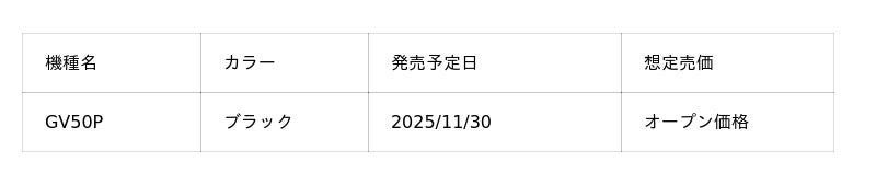 「GV50P」製品仕様表