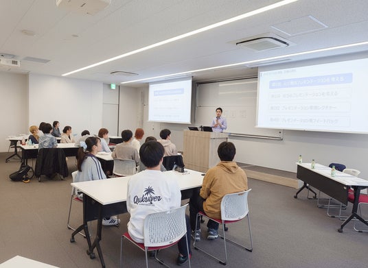 話の構成によって印象がどのように変わるのかをワークショップ形式で体感していただき、自身の発表内容に適した構成を検討していただきました。また、話し方や資料の見せ方など、伝わりやすいプレゼンテーションに必要な具体的ポイントについても学んでいただきました。
