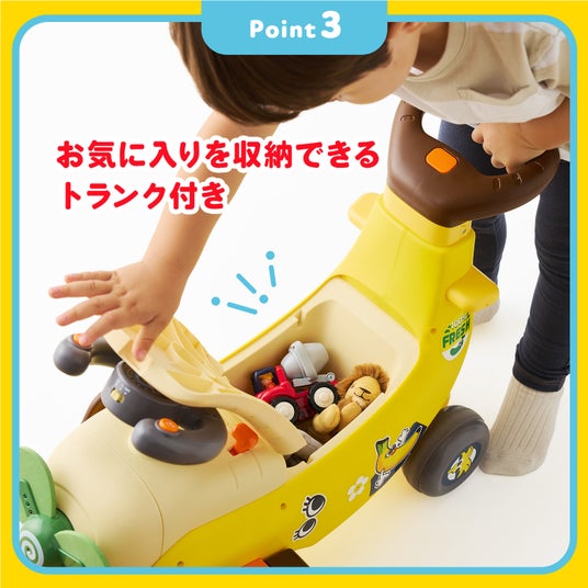 この点に着目し、この度2つのアイテムを発売。ブランドとしては新カテゴリーとなる乗用玩具と、「のりもの」シリーズの新商品を展開いたします。成長を応援する体験を叶える本商品は、今年のクリスマスプレゼントとしておすすめです。