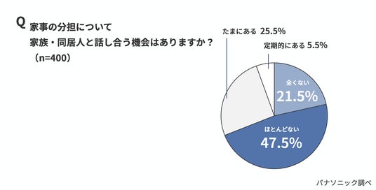 全体の3分の2以上が家事分担について“ほぼ話し合いの機会がない”と回答しており、たとえ不満や偏りがあっても表面化しないまま継続してしまうケースが多いことが判明。