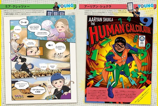 分野の枠を超えて、世界中に驚きや刺激を与えた偉業をたたえる「ギネス世界記録ICON」のコーナーでは、陸上界のレジェンド、ウサイン・ボルトや、世界的なミュージシャン、ドリー・パートンに加え、レスリング元日本代表で複数の世界記録を持つ吉田沙保里さんが登場。子どもたちへのアドバイスやメッセージを伺いました。若き達成者たちの物語をグラフィックノベル風に紹介