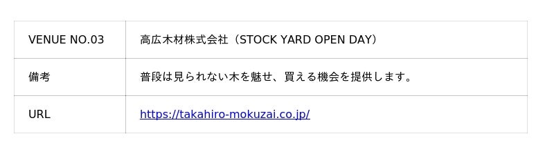 株式会社阿部清商店 / 株式会社榎戸材木店 / 株式会社Spacewasp / 株式会社東合板商会 / 株式会社ユニバーサル園芸社 / 齋藤木材株式会社 / 瀧口木材株式会社 / 高広木材株式会社 / 三井不動産株式会社(三井リンクラボ新木場3)/ JR東日本スタートアップ株式会社 / かえつ有明中学・高等学校