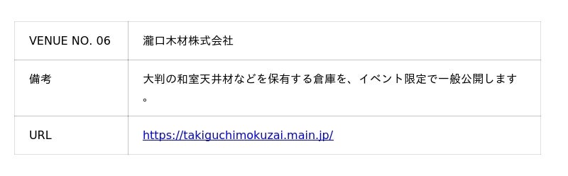 新木場には眠ったままの木材や、普段は目に触れない、材木関係以外のものづくりの会社があります。倉庫に眠る木の開放(紹介)や、木端(こっぱ)などの副産物、普段の業務の裏側紹介などを通じて、この街に潜む“見えなかった資源”との出会いを楽しめます。今回、メイン会場のSoko Station 146では、新木場に眠る面白いものを副産物として集め、紹介する「マテリアルライブラリー」が併設されます。