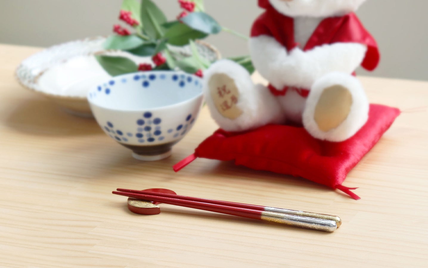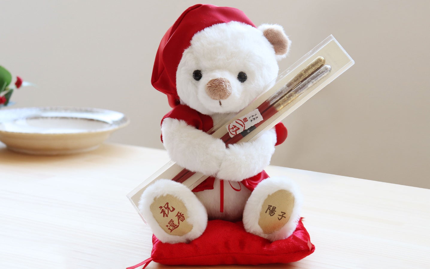 食卓で寄り添う祝い箸と、想いをそっと抱きしめるベアが、節目を迎えるご家族の心に温かな灯りをともしますように。