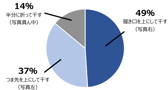 A. 37%が間違った干し方をしていた!? 履き口(ゴム部分)を上、つま先を下にして干すのが基本