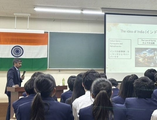 11月14日、リンデンホールスクール中高学部(所在地:福岡県筑紫野市、校長:都築明寿香)は、インドとの国際交流を促進するプロジェクトの一環として、在福岡インド総領事館よりラムクマール総領事を招き、中学生を対象に特別講演会を開催しました。講演ではインドの歴史、社会、伝統文化、日印関係等について紹介され、生徒たちは国際理解を深めました。