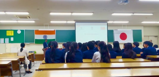 総領事からは、インドの歴史や文化をはじめ、言語や宗教、科学技術や日印関係を強化した著名なインド人等についても紹介され、途中、生徒からの質問の回答も交えながらインタラクティブな講義が展開されました。